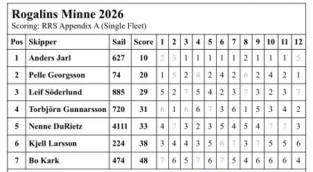Resultat Rogalins minne 18 april 2026